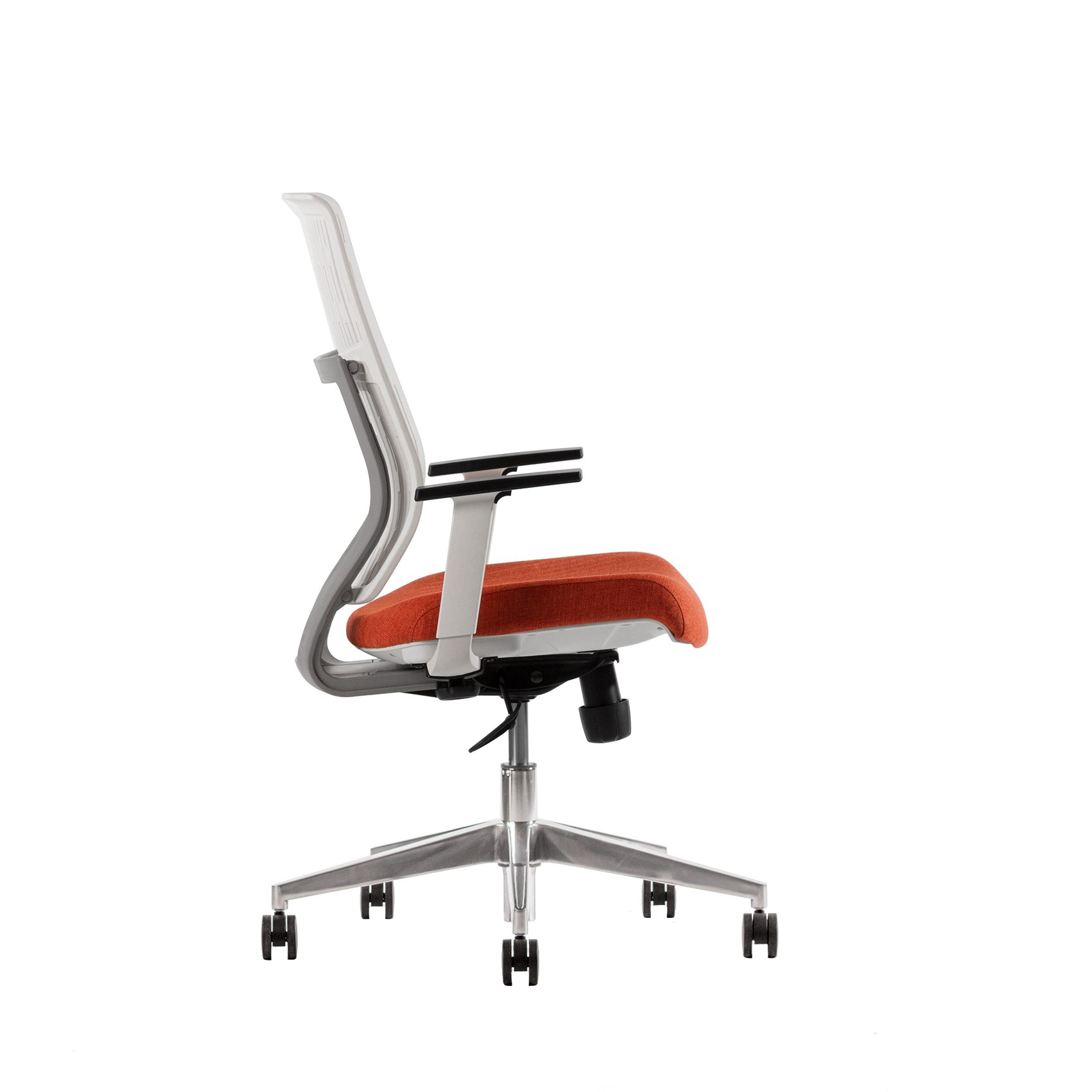 - Descansabrazos de polipropileno color blanco, con pad de poliuretano inyectado color negro, con ajuste de altura.