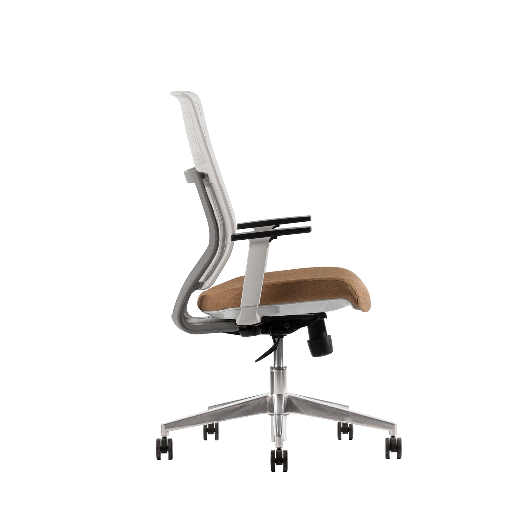 - Descansabrazos de polipropileno color blanco, con pad de poliuretano inyectado color negro, con ajuste de altura.
